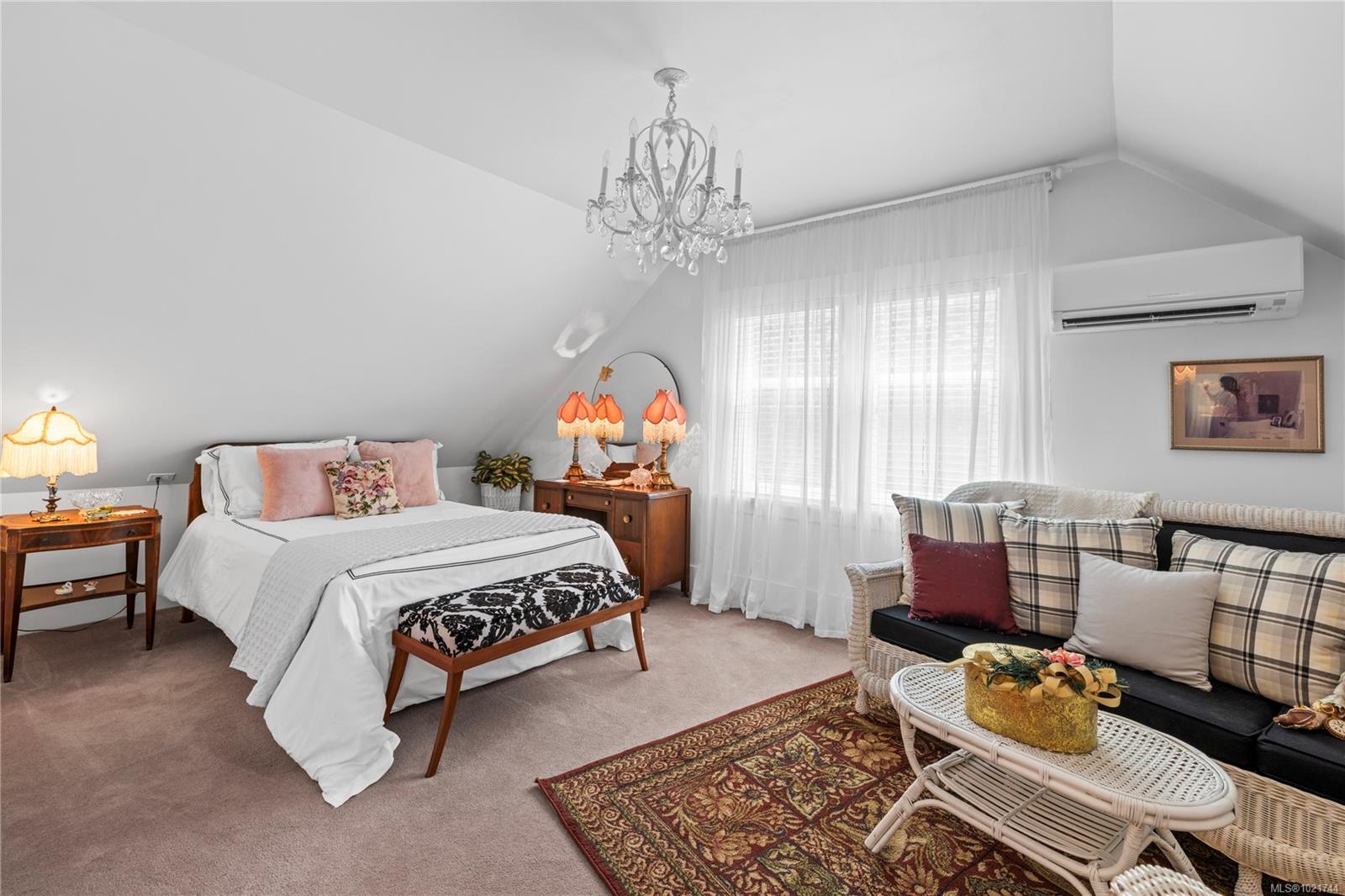 ...ith a full bathroom. The lower level boasts a large recreation room, an extra bathroom, and ample storage space, ensuring plenty of room for all your needs. Step outside to the beautifully landscaped gardens in the fully fenced yard, where you’ll find 2 detached shop/garage and a charming tea house, perfect for relaxation or entertaining. This home has seen many upgrades, including a durable metal roof, energy-efficient vinyl windows, and a heat pump for year-round comfort.